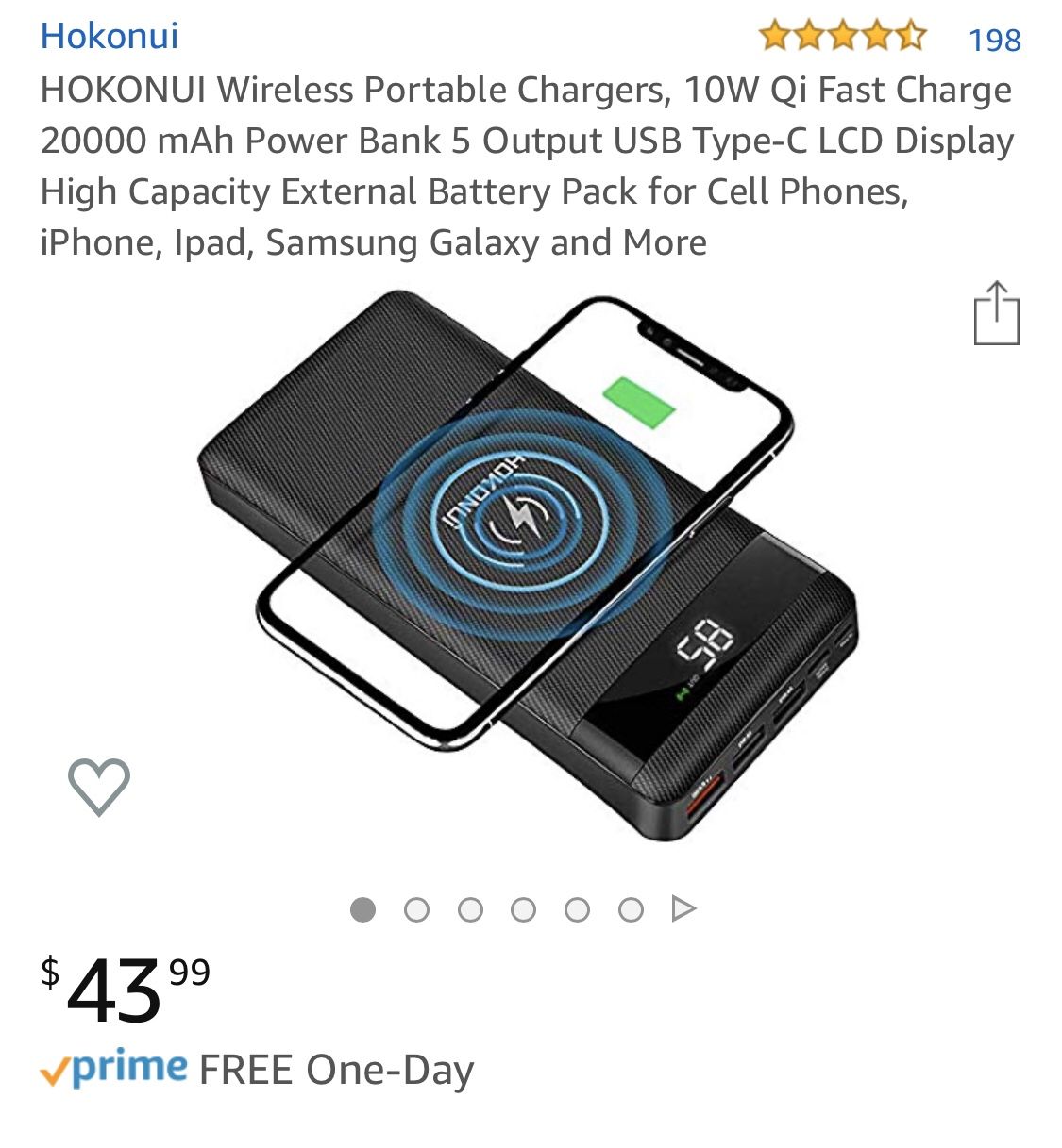 HOKONUI Wireless Portable Chargers, 10W Qi Fast Charge 20000 mAh Power Bank 5 Output USB Type-C LCD Display High Capacity External Battery Pack for Cell Phones, iPhone, Ipad, Samsung Galaxy and More