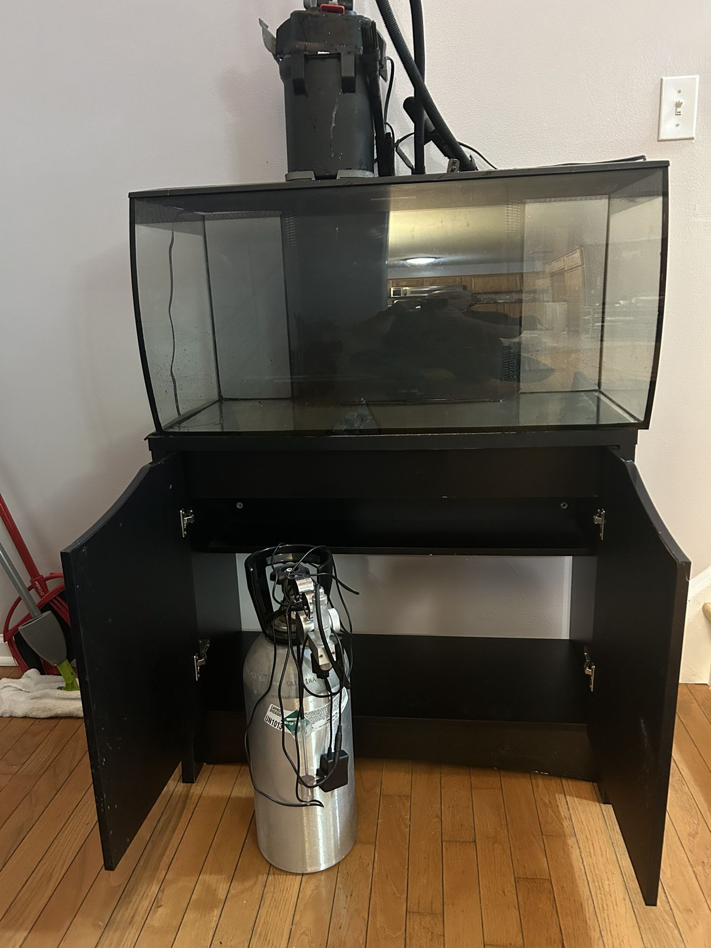 Only a month old. Kit comes with tank stand lid. Light. 2 filters. Co2 system