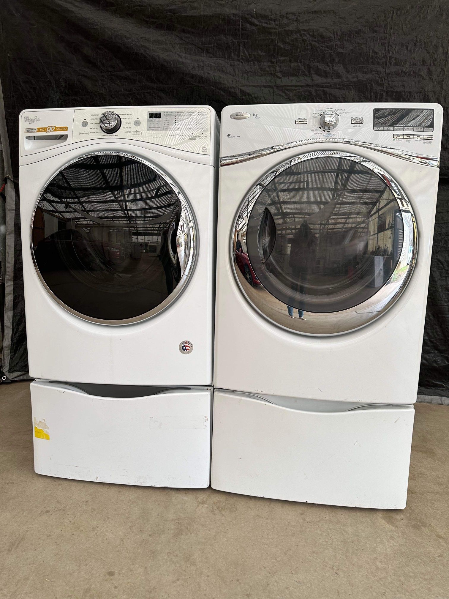 Set front load whirlpool washer and gas dryer with drawers for extra storage Clean inside and out Free delivery & installation