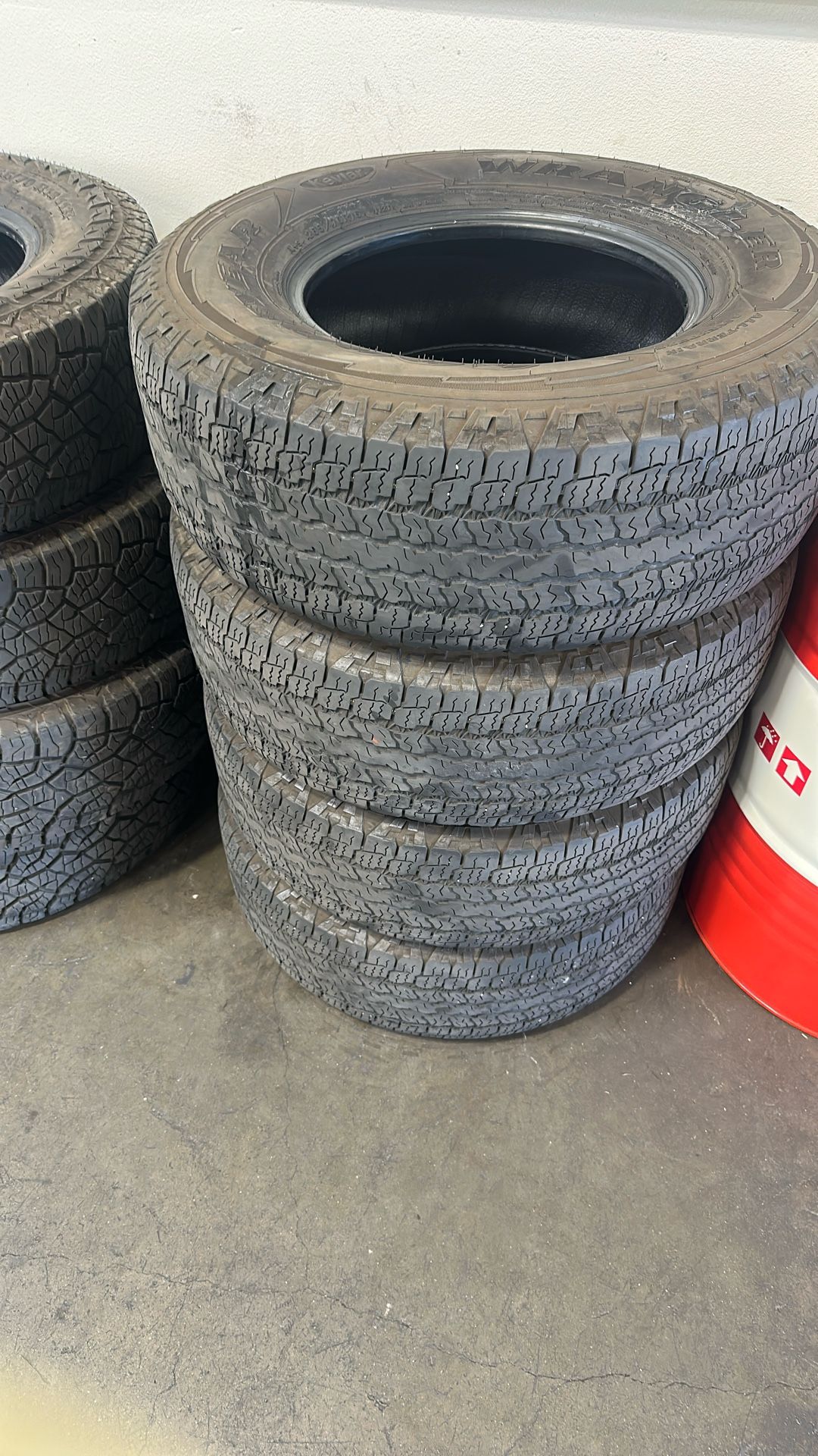 Goodyear wrangler tires 16” off a Toyota Tacoma. 265/70/16. Has some life left and all hold air fine. $200
