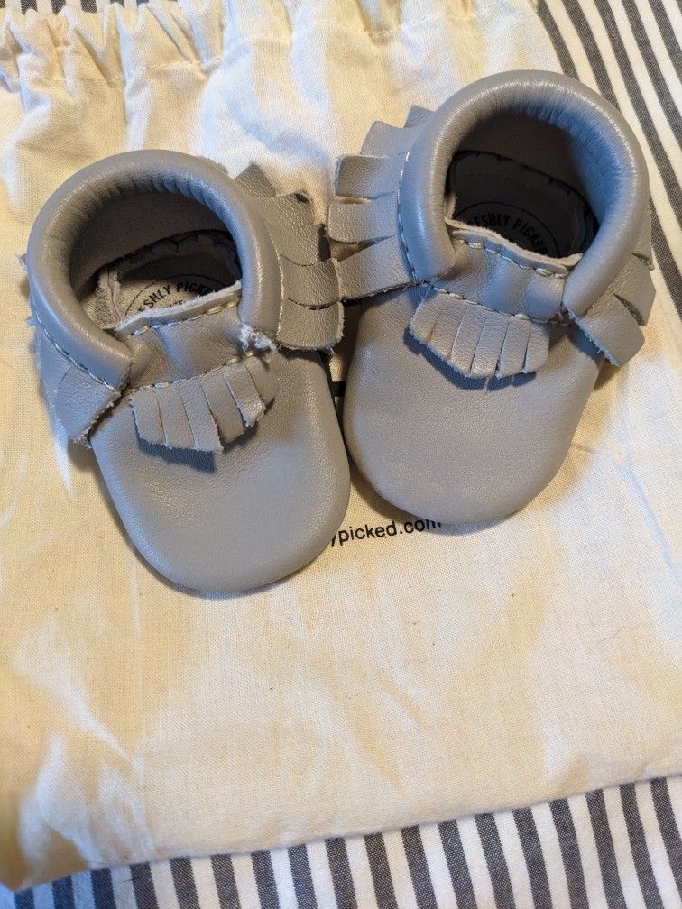 Newborn Freshly Picked Moccasins - size 0 In perfect condition and with storage bag.