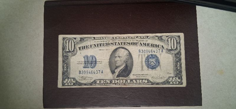 Was told these Ike dollars all but 2 are damn near uncirculated and the 10 dollar silver note from 34 is in great shape still with the vibrancy of the green which tends to be faded . Ikes range by book value of 20 to 30 each for uc and the silver note ranges greatly pending on auction house or private buyer etc from 300 to 2500. Asking 400 for all of it.