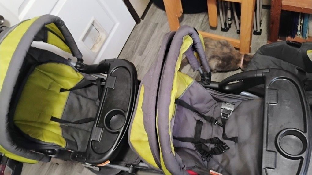 Good condition comes with carseat that sits in the stroller front or back works awesome.