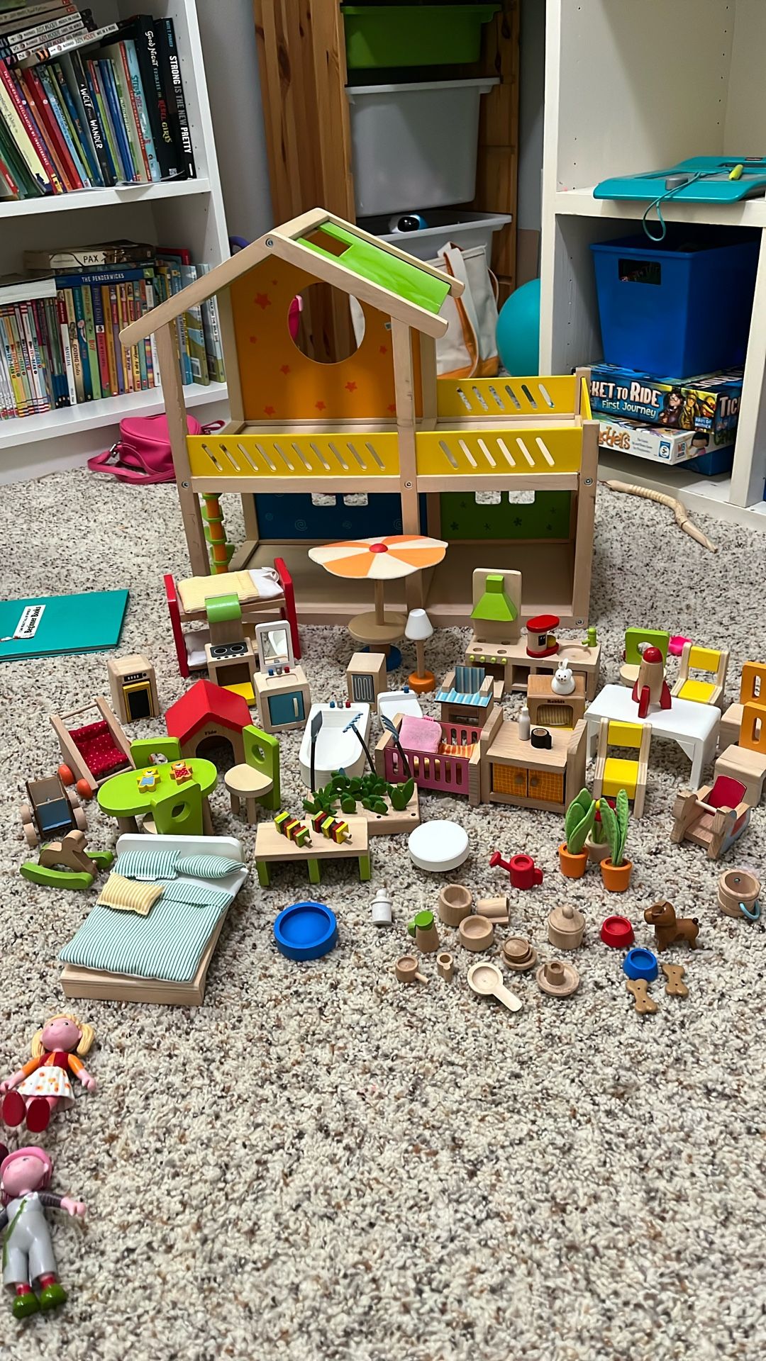 Dollhouse with loads of accessories and people. Some damage to stairs but fully functional (photos) Pick up near St John’s Community Center