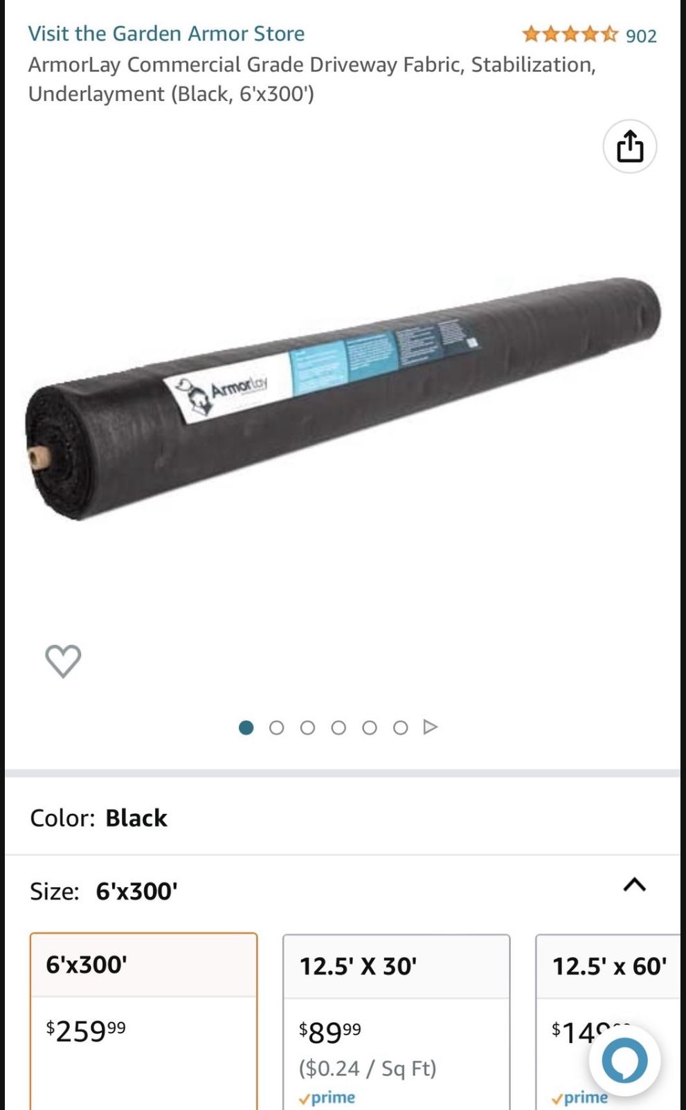 ArmorLay Commercial Grade Driveway Fabric, Stabilization, Underlayment (Black, 6'x300