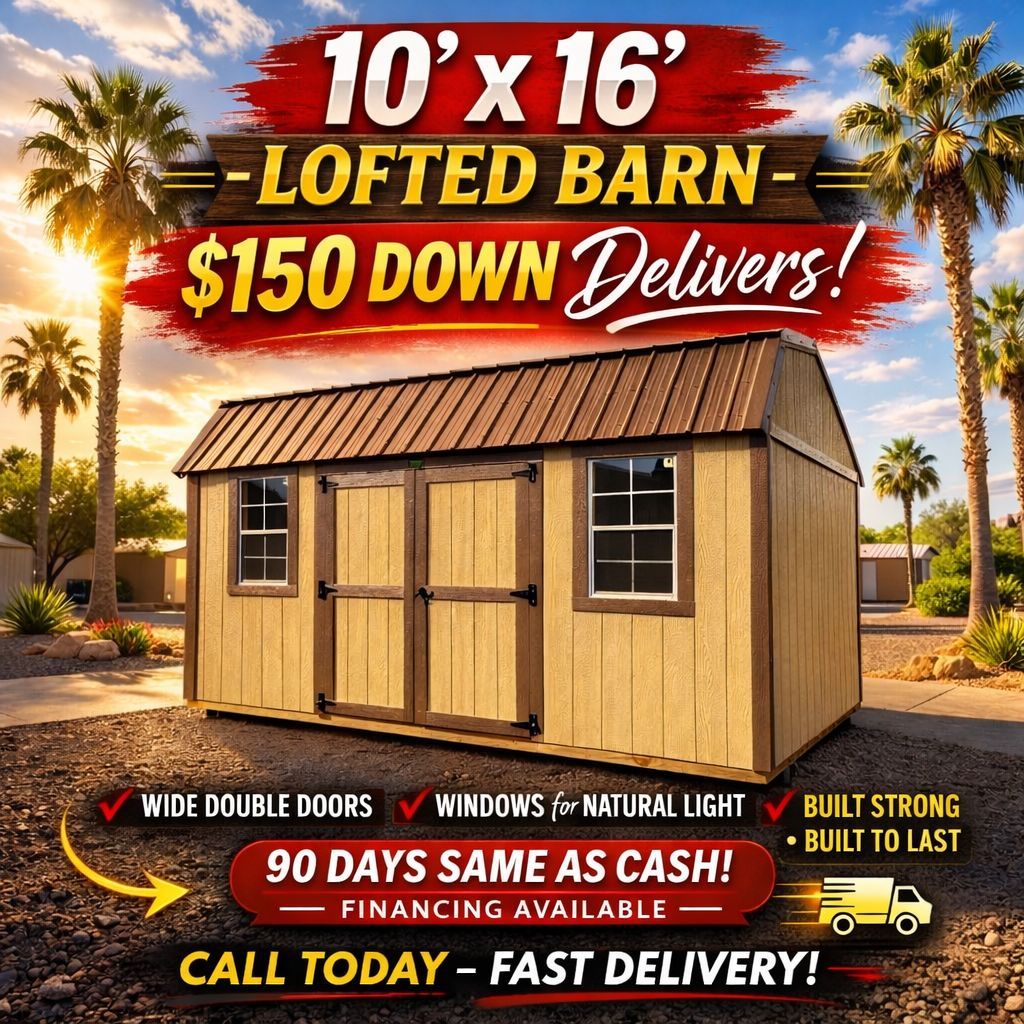 π₯ 10β x 16β Shed Gal Lofted Barn β Only $150 Down Delivers! π₯