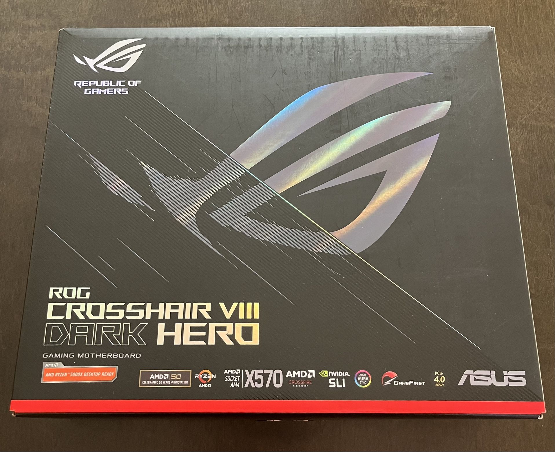 The Asus ROG CROSSHAIR VIII DARK HERO AMD Am4 X570S Motherboard is an ATX motherboard that supports AMD Ryzen processors. It has eight SATA III ports, two M.2 NVMe ports, and four dual-channel DDR4 memory slots. It also has one PCIe 3.0 x16 slot and two PCIe 4.0 x16 slots Like New motherboard Low ball offers will be ignored. These are going for 500 and selling quick used on eBay so this is a deal.