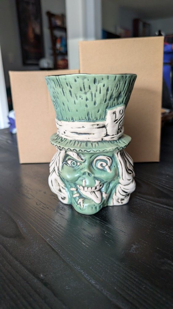 Lost Temple Traders: Zombie Hatter Tiki Mug Comes from a tiki collector, very well cared for. Pick up only. Great for a tiki collector or Disney Alice in wonderland fan. Asking for below cost just trying to move it. From website: "We’re all a little mad! Introducing the Zombie Hatter Mug designed for Lost Temple Traders by Bridget McCarty. This is a a timed pre-sale, and edition size will be set when orders close after 24 hours. The Zombie Hatter stands 6” tall."