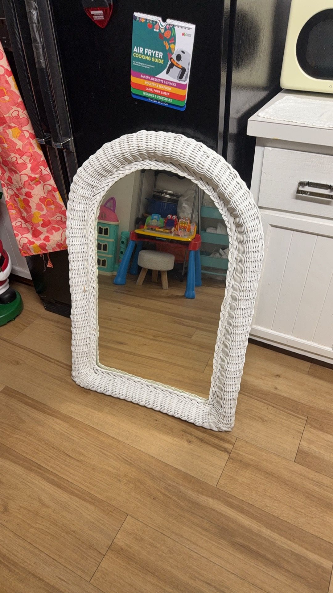Vintage Arched White Wicker Wall Mirror