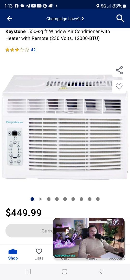 Brand new in box With remote Large room 12000 btu 230volts Orig price $499+tax