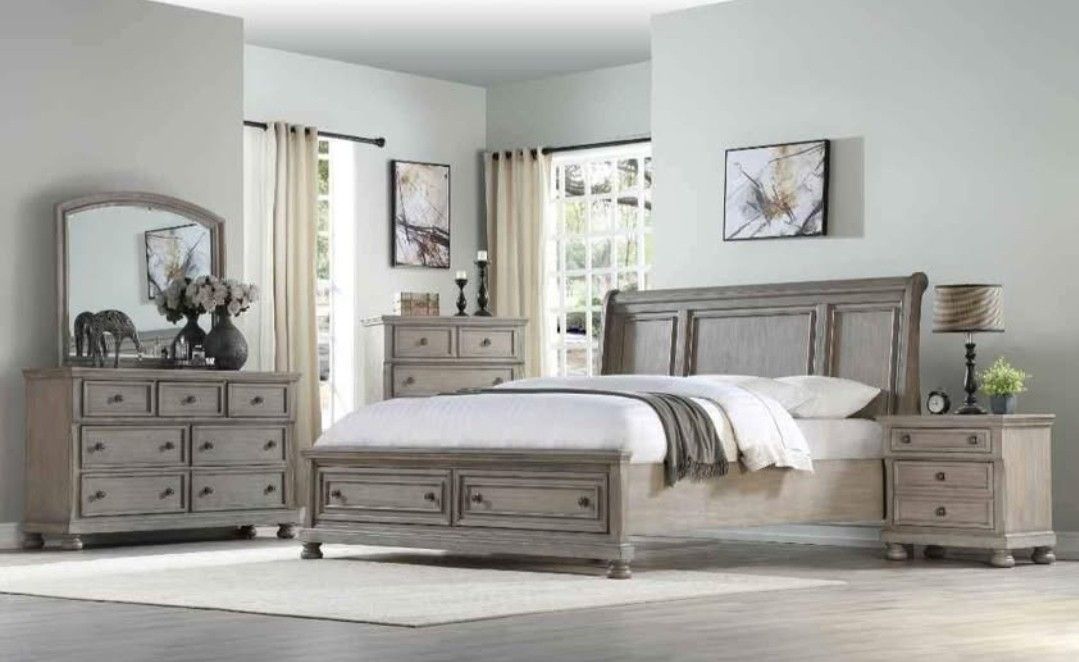 ❗️ LIMITED TIME ONLY ❗️ TAKE IT HOME TODAY Beautiful!😍 7pc Queen Bedroom set Color: Natural grey Queen set WAS $3499 NOW $2,599 This beautiful set comes with a Platform Bed - Queensize queen headboard - Queen size queen footboard - side rails - Dresser - Mirror - 1 nightstand - tall chest King size available ✅️ ❗Mattress is not included (sold separately)❗ Delivery and professional installation available 🚛✅ You can take any dining set, 🔥🔥 only $39Down 🔥🔥 - No credit needed -100 days same as cash - get approved for up to 💲5,000 😲 that's right ! Hablamos Español - ofrecemos financiamiento y entrega a domicilio e instalación profesional 🚛✅ Contact us 👉📲 today