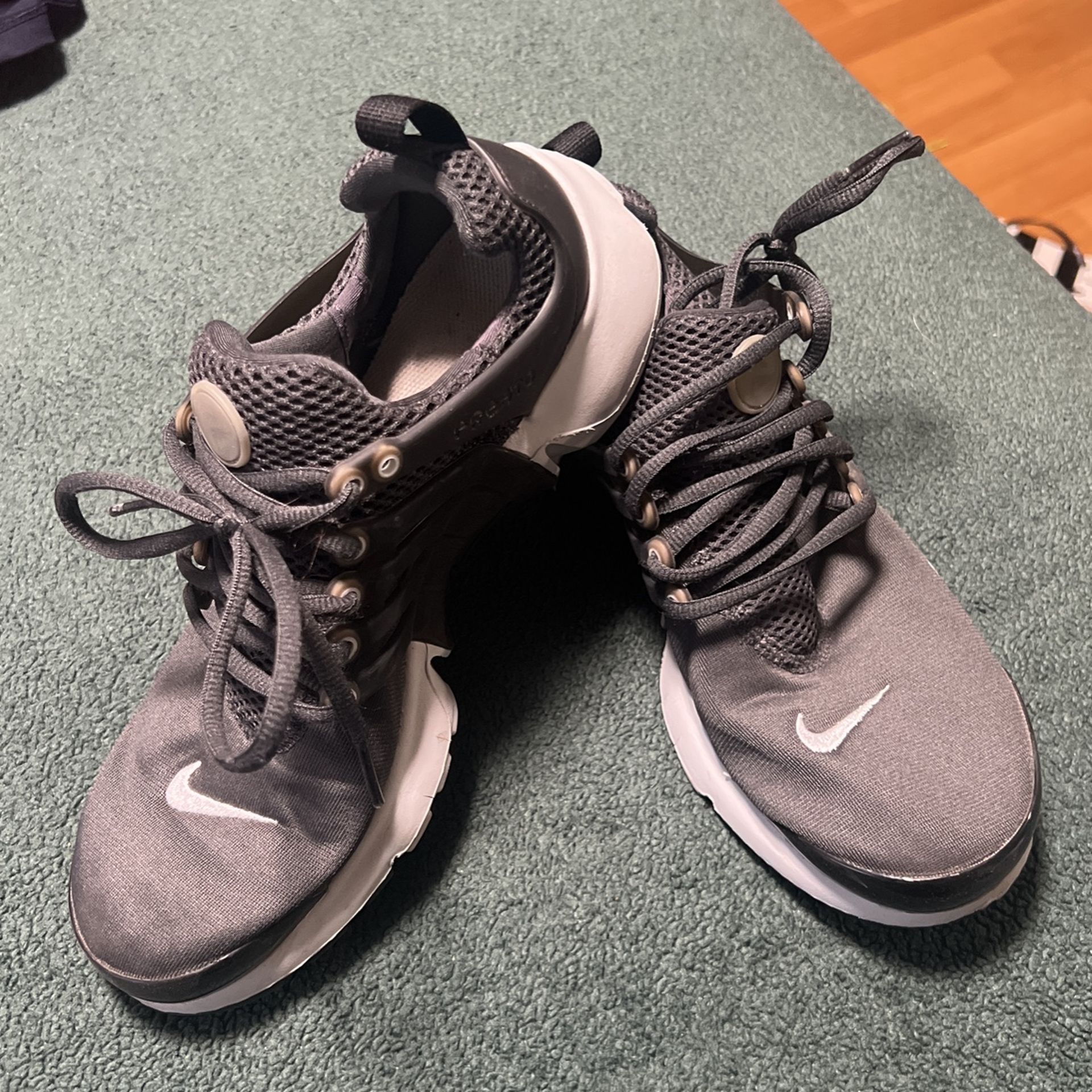 Women, Nike shoes, No rips No stains ! Not a really big fan of Nike. They were a gift use them once or twice.