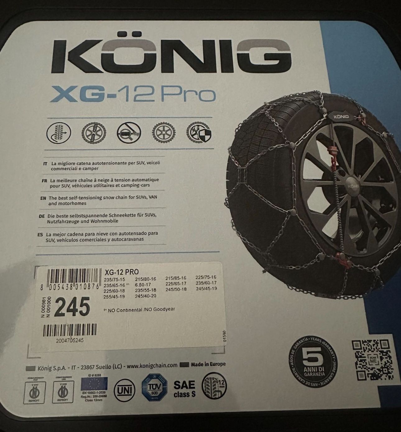 Brand new, never used. We bought bigger wheels/tires so they won’t fit on our car anymore. We have a 2020 RAV4 Hybrid. KONIG XG-12 Pro. Specs in photo.