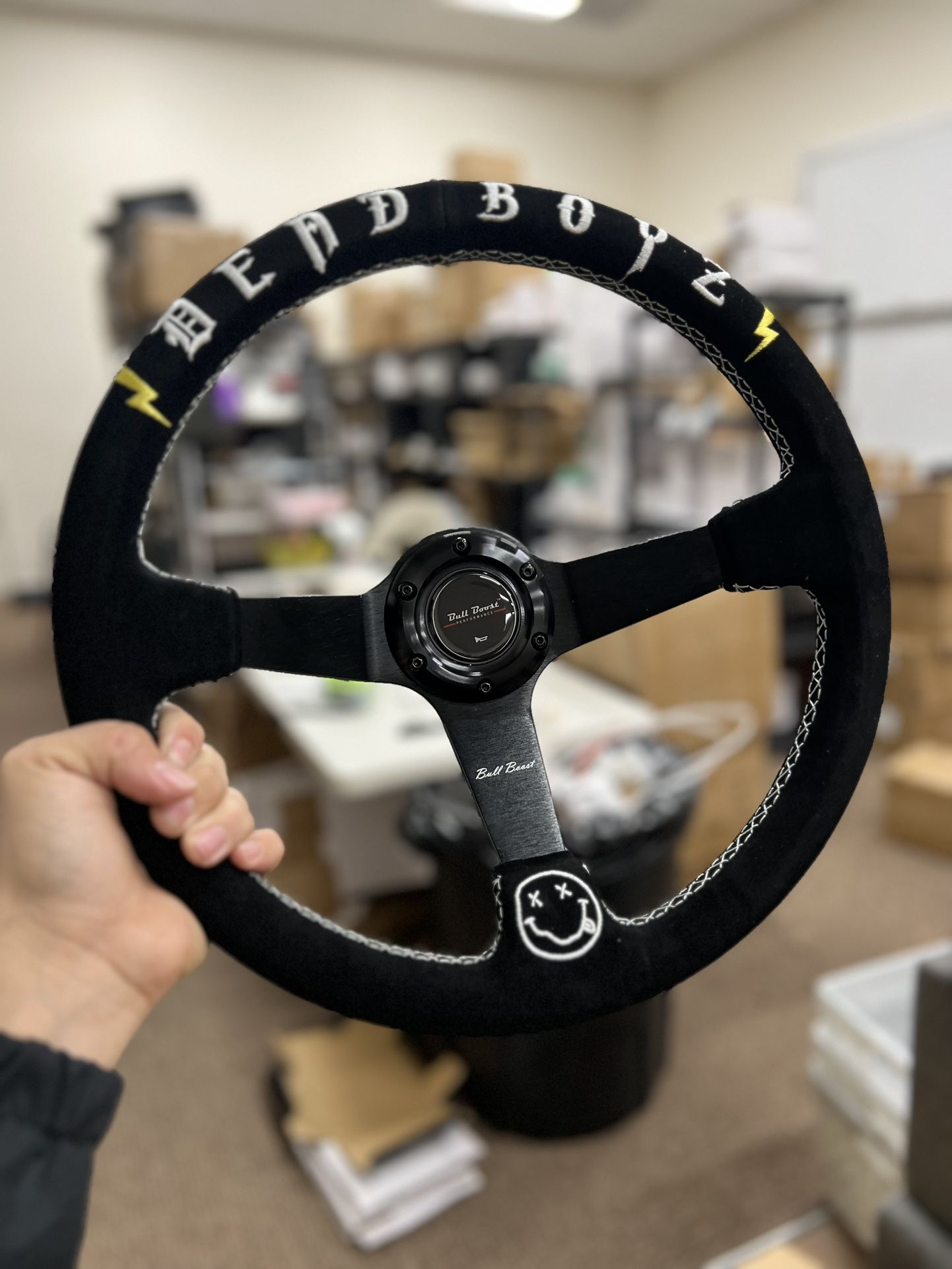 Deadboyz Universal 350mm 3"Deep Dish 6-Bolt Steering Wheel Black Suede