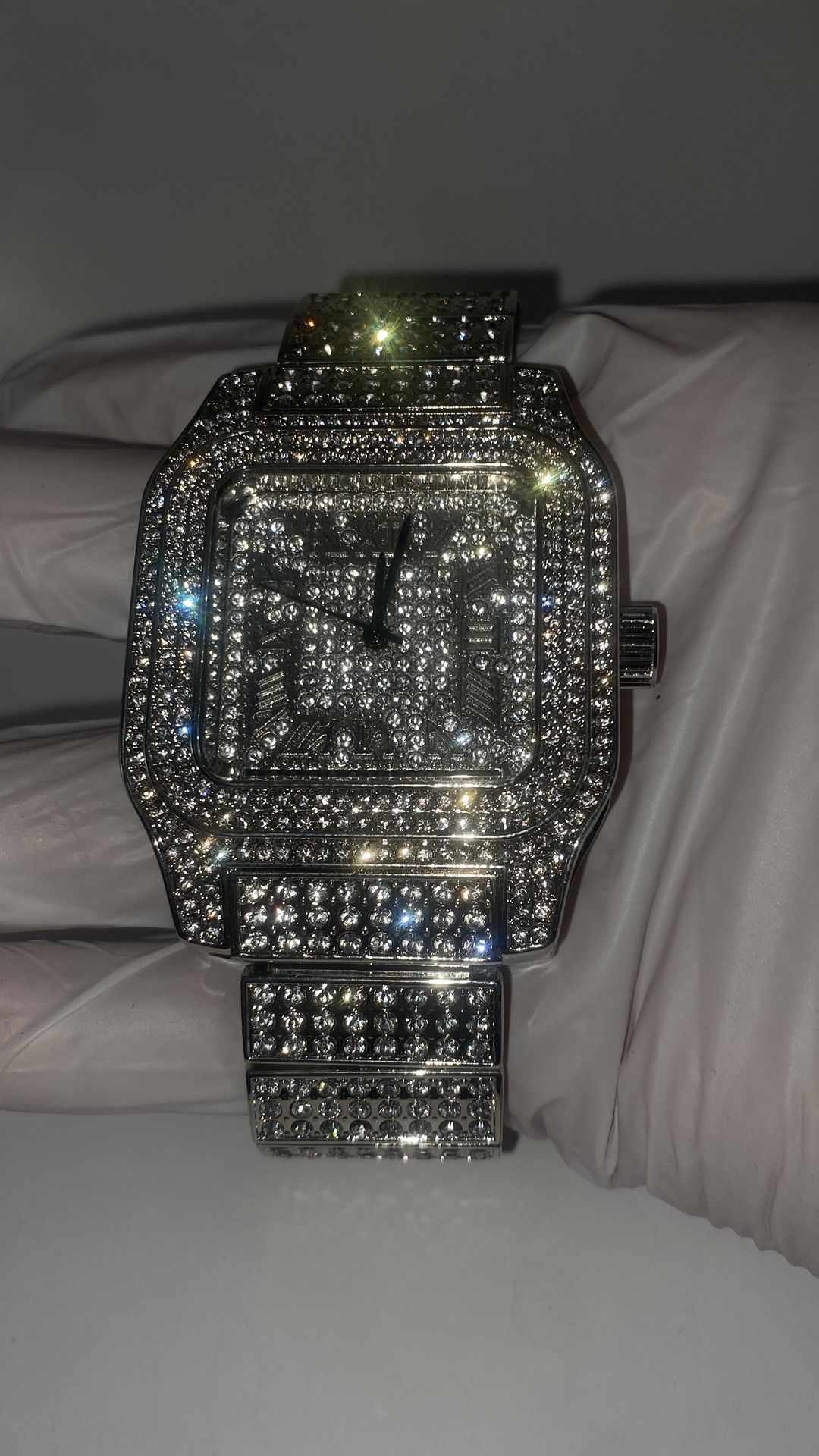 Early Christmas sale! Until December 6th, everything is 50% off! This watch is heavy, silver and completely iced out. It’s $500 so today we’ll make it $250