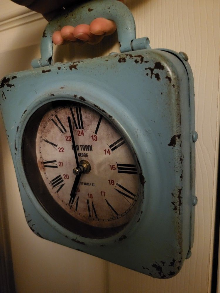 Runs on batteries as seen in photo π Still working! β°οΈ Blue vintage look π