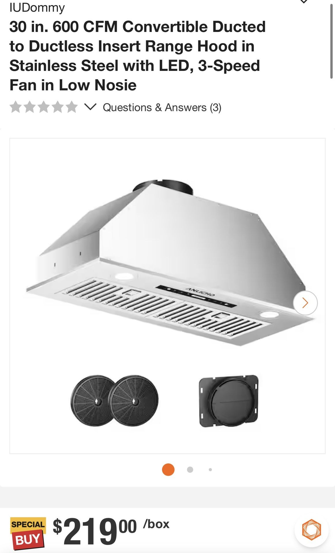 30 in. 600 CFM Convertible Ducted to Ductless Insert Range Hood in Stainless Steel with LED, 3-Speed Fan in Low Nosie