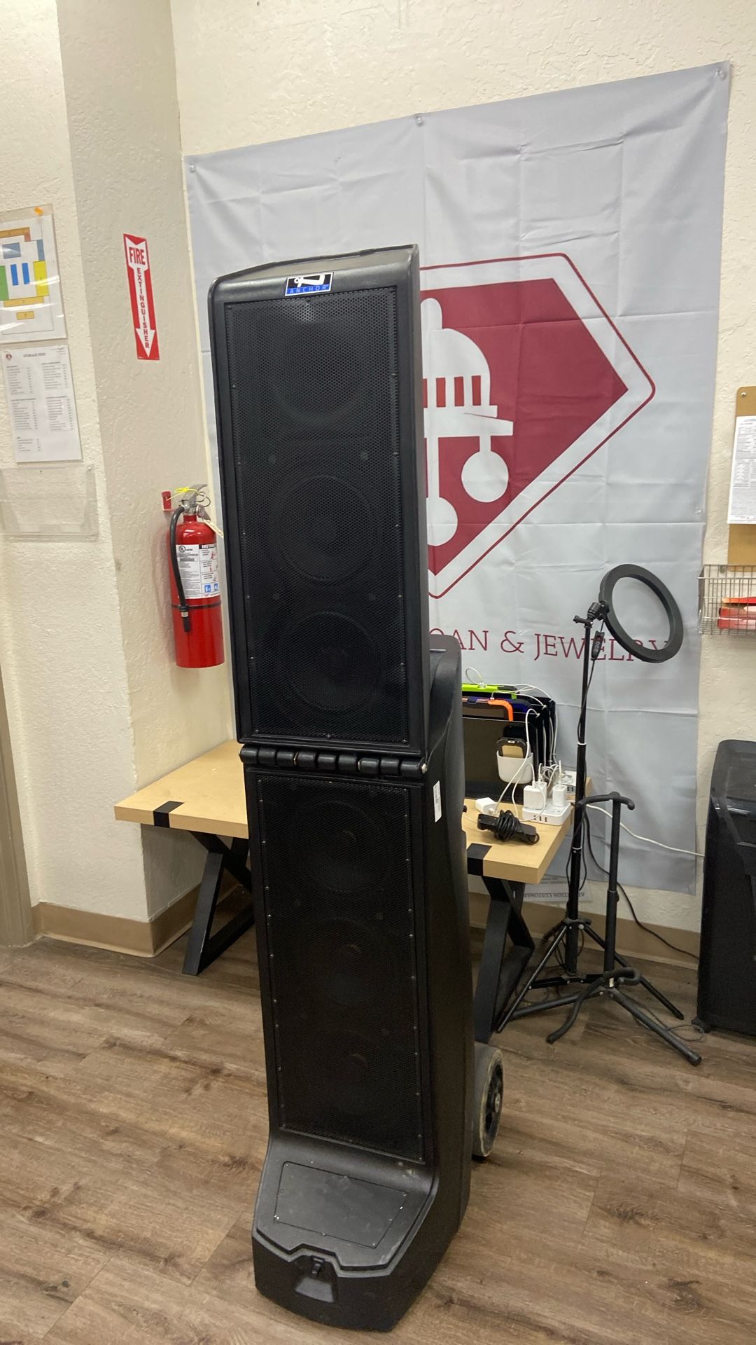 Bluetooth speaker Bigfoot 2 pa speaker with power cord. FYI low bass on Bluetooth from phone but plug a bass guitar in and jam out with that bass