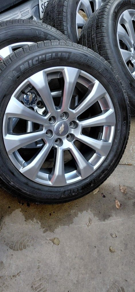 22s HIGH COUNTRY CHEVY GMC RIMS TIRES 6LUGS 6X5.5 ON 275 50 22 MICHELIN TIRES GOOD TREAD FITS ANY CHEVY SILVERADO TAHOE SUBURBAN ESCALADE GMC SIERRA YUKON WILL SELL RIMS ONLY FOR $1000