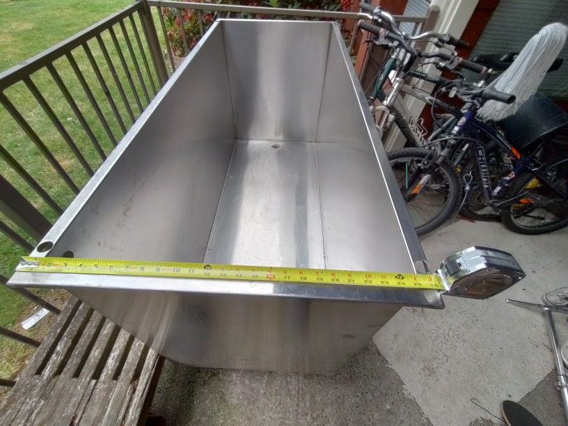18 gauge Stainless steel container, I used as a pool for my kiddos but they are grown up now . I don't have space for it ,it can be used for storage, put in any liquid, water,oil, milk