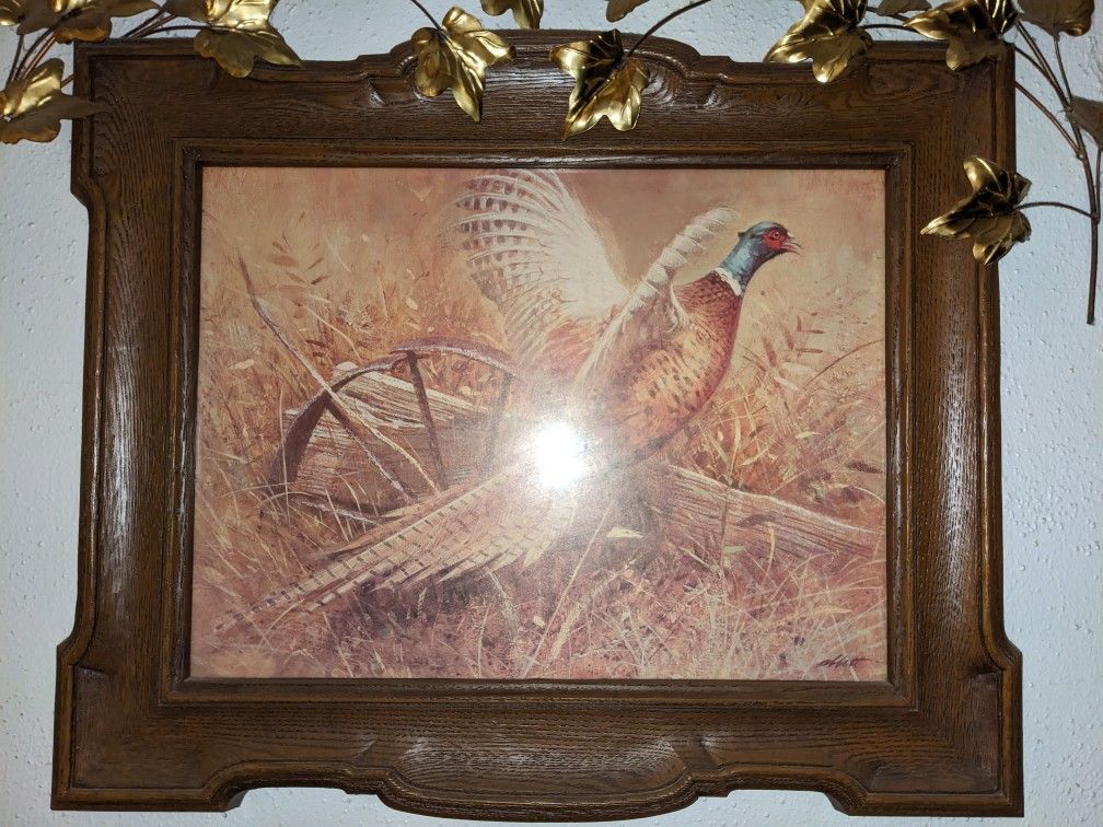 Vintage Robert Abbett Pheasant Print In Original Homco Frame