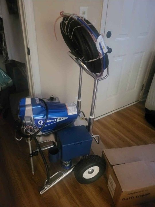 Selling a brand new Graco FinishPro II 395 PC sprayer. This professional-grade unit is ideal for contractors or serious DIYers looking for top performance and a smooth, consistent finish. Perfect for spraying primer, sealer, lacquer, and more. Key Features: Electric air-assisted airless sprayer Max Pressure: 3300 PSI Flow Rate: 0.45 GPM Compatible with a wide range of materials Great for high-end finishes with reduced overspray Mounted on a sturdy cart with large wheels for portability Condition: Brand new – never used. Note: Spray gun is not included. You will need to purchase the spray gun separately. Retail Price: $4,259 – $5,965 depending on package