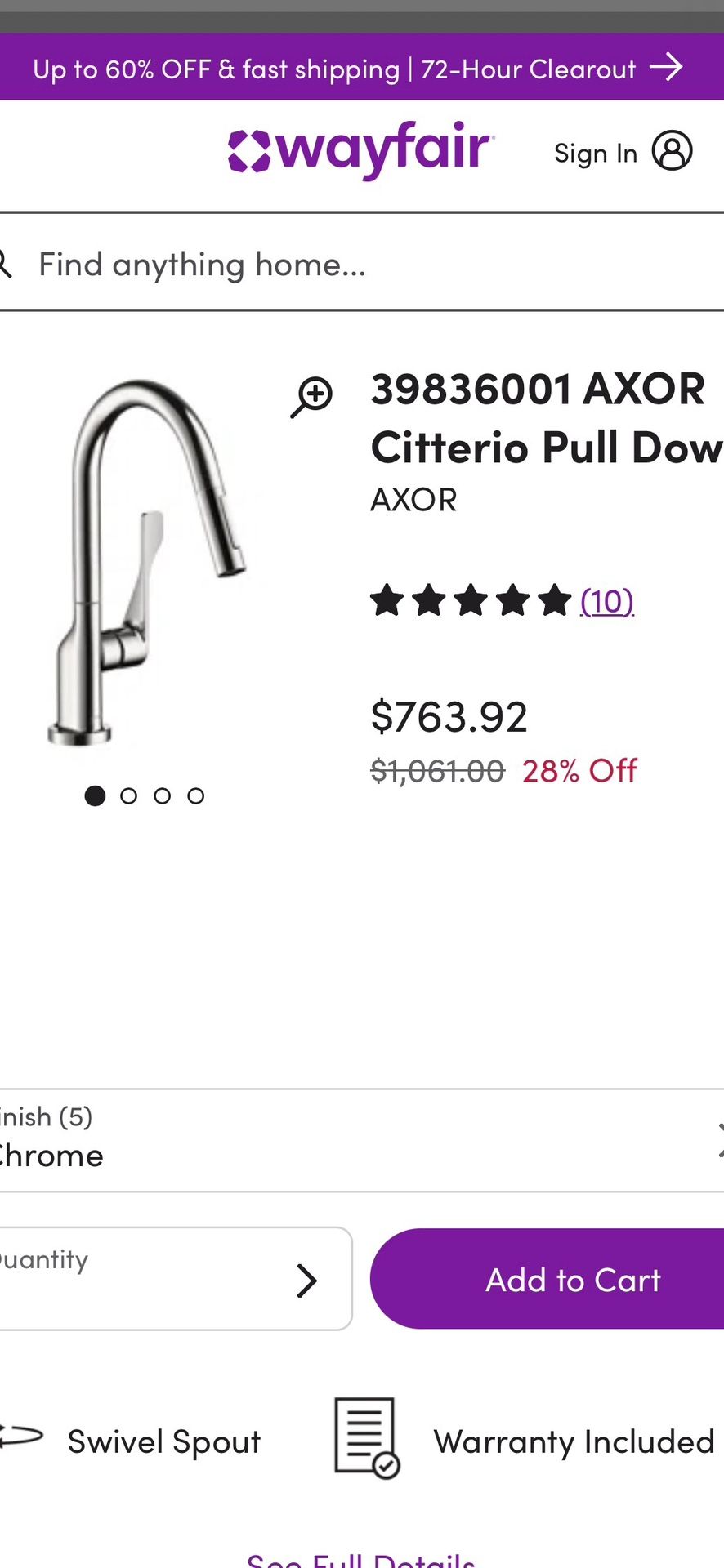 AXOR Citterio Chrome Bar Kitchen Faucet