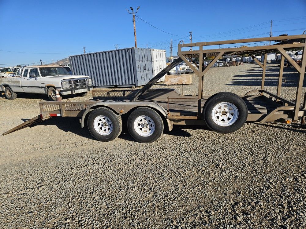 16 foot 2004 Big Tex trailer wood deck, with upper deck , upper Deck comes with loading ramps and 1500 lb electric winch, with spare tire and multiple tie downs throughout the trailer,has fuel can holders. $5,200