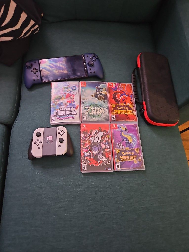 Hello im selling like new BARELY used Nintendo switch oled. EVERYTHING LIKE NEW. This best deal on here you getting 2023/2024 games NOT no bargain bin games. You get everything you originally get with switch including: Pokemon scarlet Pokemon violet Zelda tears of kingdom Persona 5 tactics Super Mario wonder Hardshell Carrying case Extra joycons( better in my opinion) Switch has had screen protector the moment it was unboxed. Any questions feel free to ask. ONLY MEET AT POLICE STATIONS NO EXCEPTIONS. SIDENOTE: Also have a animal crossing switch not posted if that's something you prefer over the oled it be extra $50(rare)