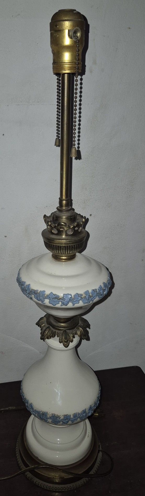 Vintage Collectible rare White Ceramic Wedgwood Queensware Double Socket Lamp Hard to find Queensware lamp with this shape of base color white with blue raised grape Vines a true vintage beauty in excellent condition no chips works π 27.5 inches tall by 6 inches wide