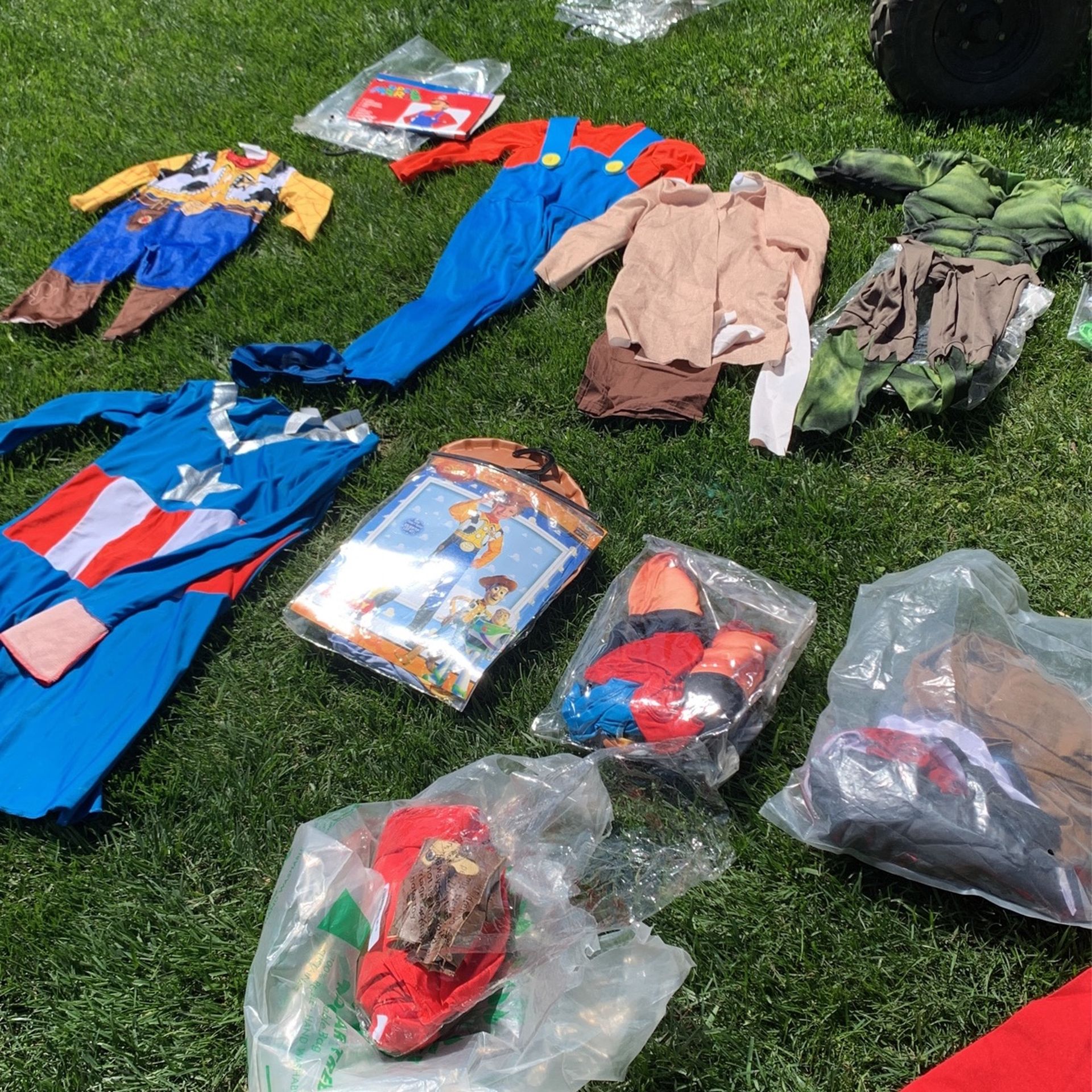 Halloween costumes For sale! Woody from Toy story Mario Jedi hulk Batman army soldier us movie vampire door captain America women’s size medium $80 of all or obo