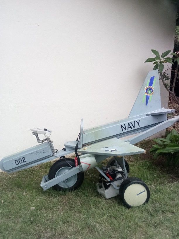 KIDS WOODEN NAVY F-18 LIFE SIZE FIGHTER JET AIRPLANE REPLICA BUILT ON TOP OF A WHEEL BARROW ACTUALLY MOVES AND CHILDREN CAN RIDE IT, STEERING WHEEL DOES NOT TURN BUT ONLY GOES STRAIGHT, CAN REPOSITION MOVING CHILD RIDING W WHEELBARROW SAFETY HANDLES ARMS GOES ABOUT 3 MPH INCLUDED W 12 V BLACK PORTABLE BATTERY 4 CHARGING RETAILS : PRICELESS LOCATED/PICKUP : CORONADO ISLAND, CA 92118 - CITY OF SAN DIEGO ACCEPTS : CASH + VENMO ( PREF ), CASHAPP & APPLEPAY