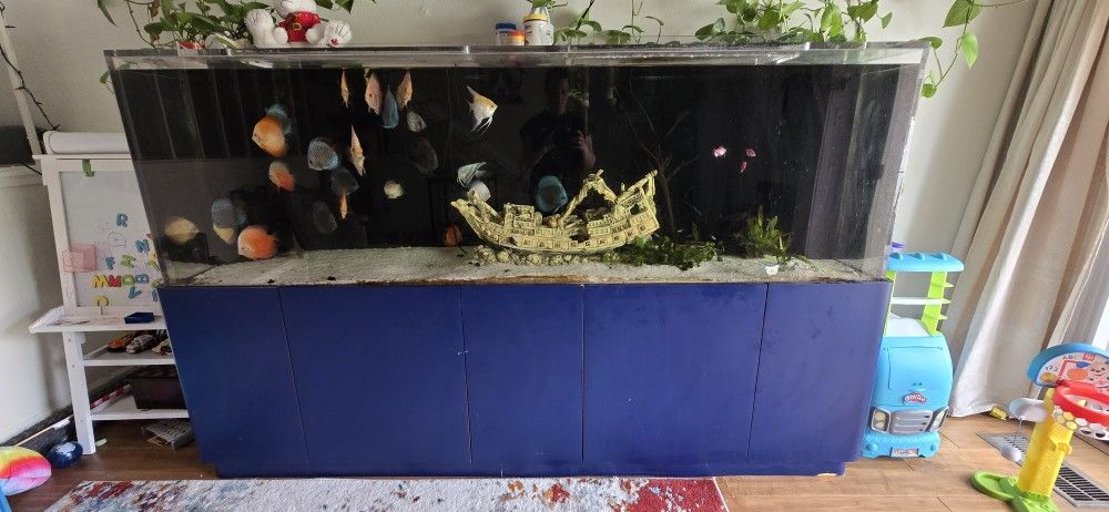 Fish tank Saltwater Freshwater 300 gallons acrylic X6 filters Lights Sand Decorations Air pump Dimensions H30×96×24 With bottom H60