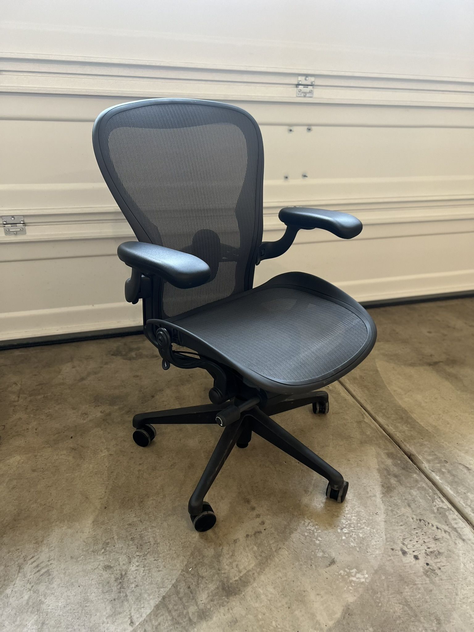 Like new Size B Adjustable lumbar support Fully adjustable arm rests Forward tilt/recline Happy to answer any questions?