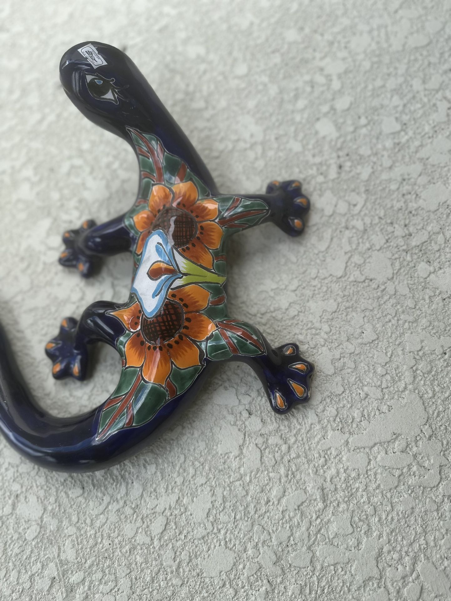 Unique Talavera Lizards embody all the charm of Mexican Talavera. With intricate floral patterns on a burnt umber background, these striking Talavera Lizards will illuminate almost any home decor. Every Talavera Lizard Includes a hole in the belly for hanging on a wall. Perfect in both indoor and outdoor spaces.
