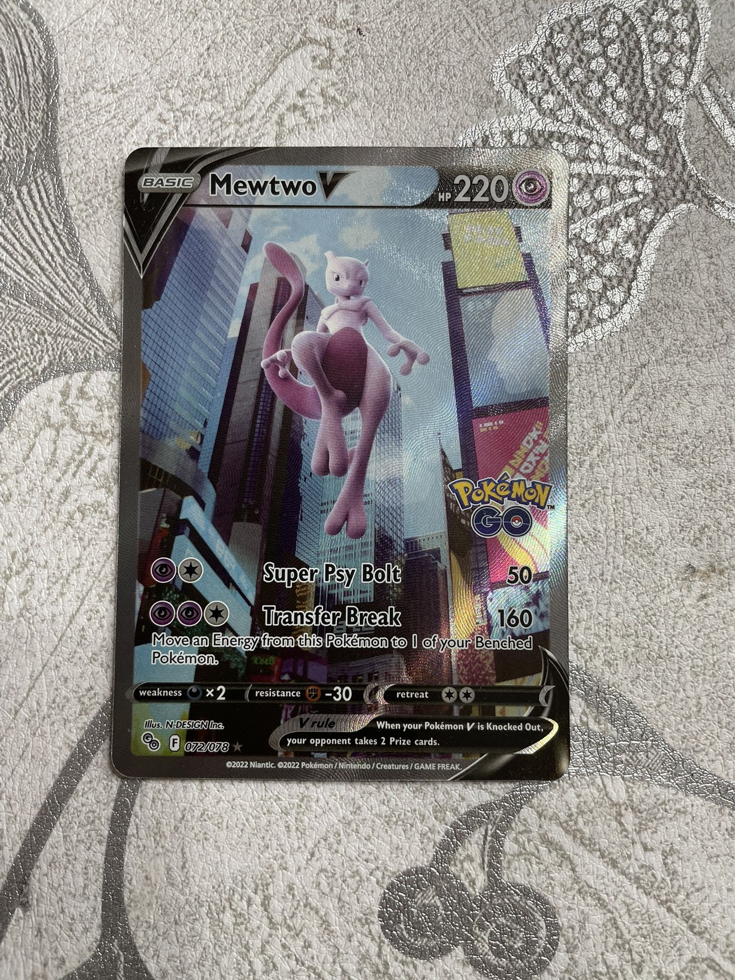 Pokémon Mewtwo V alt Art Ultra Rare Holo 220 HP Pokémon GO Card 022/078 (Perfect Condition)