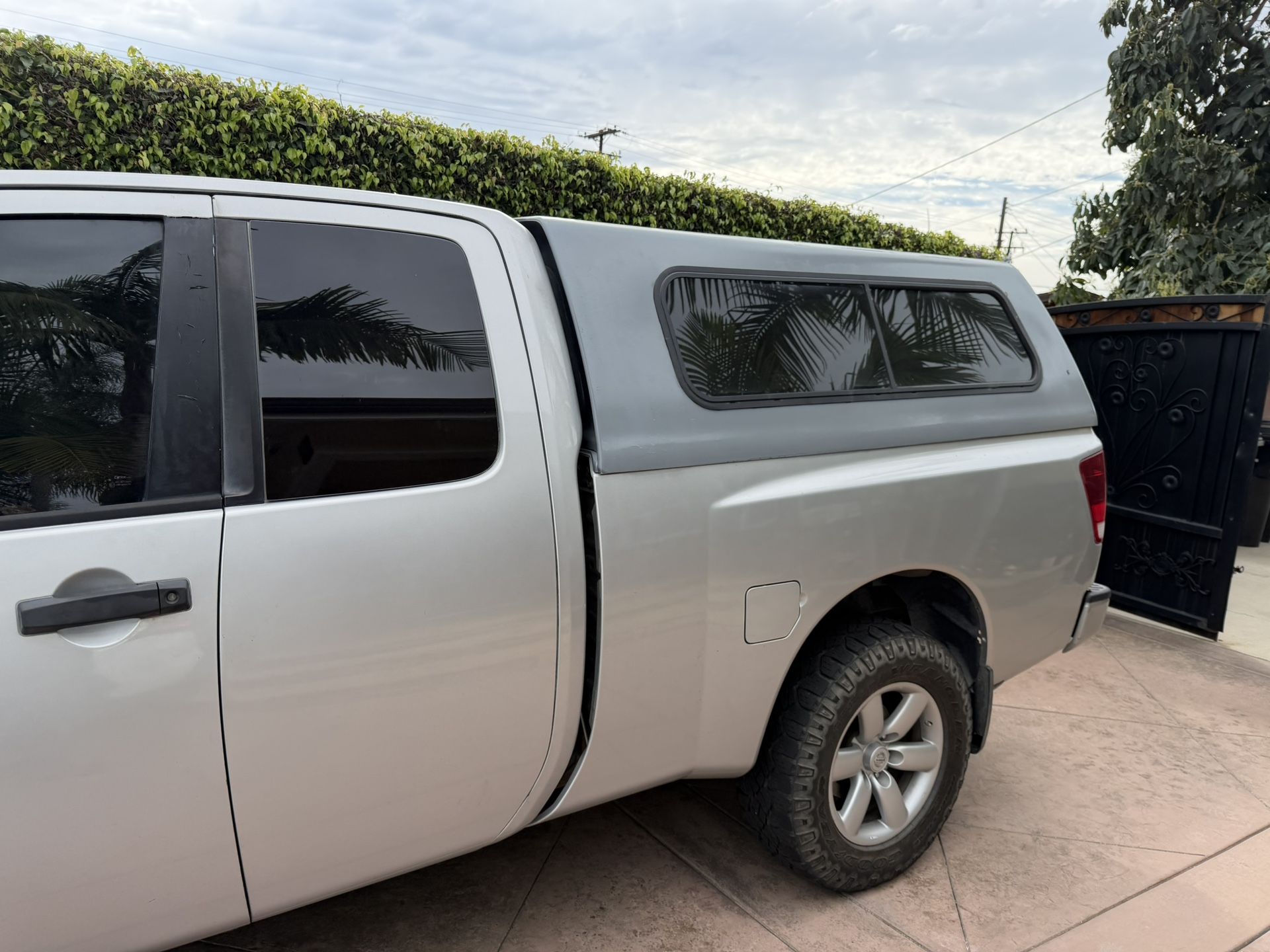 Selling camper shell, topper, for 2004-2015 nissan titan with 6.5’ bed , was black, and i sprayed painted it grey, only one lock works, i do have keys and hardware. Not the prettiest but does its job.