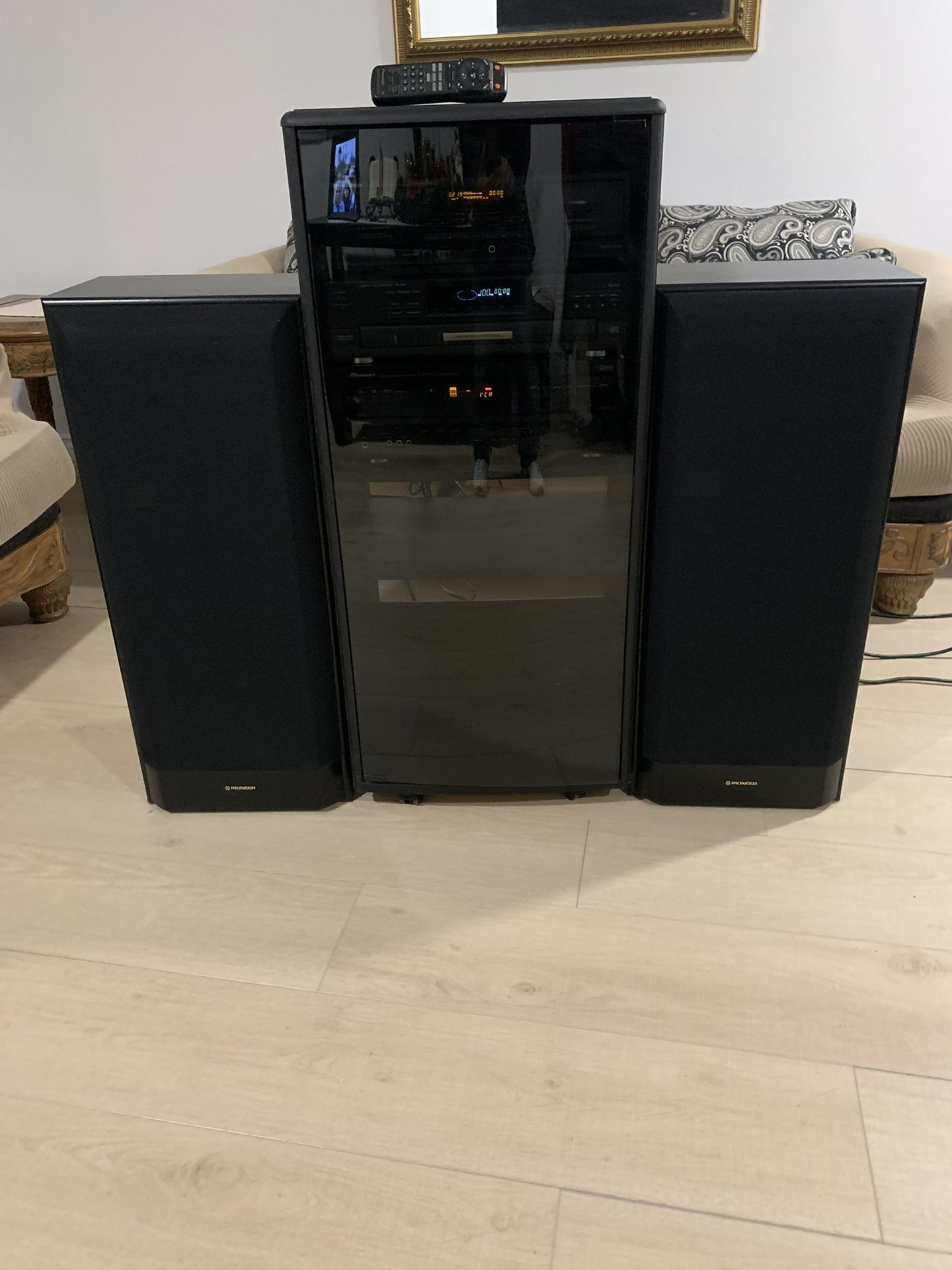 Pioneer stereo system Receiver CD player,cassette player stereo rack , remote control and speakers in excellent conditions everything works great sound