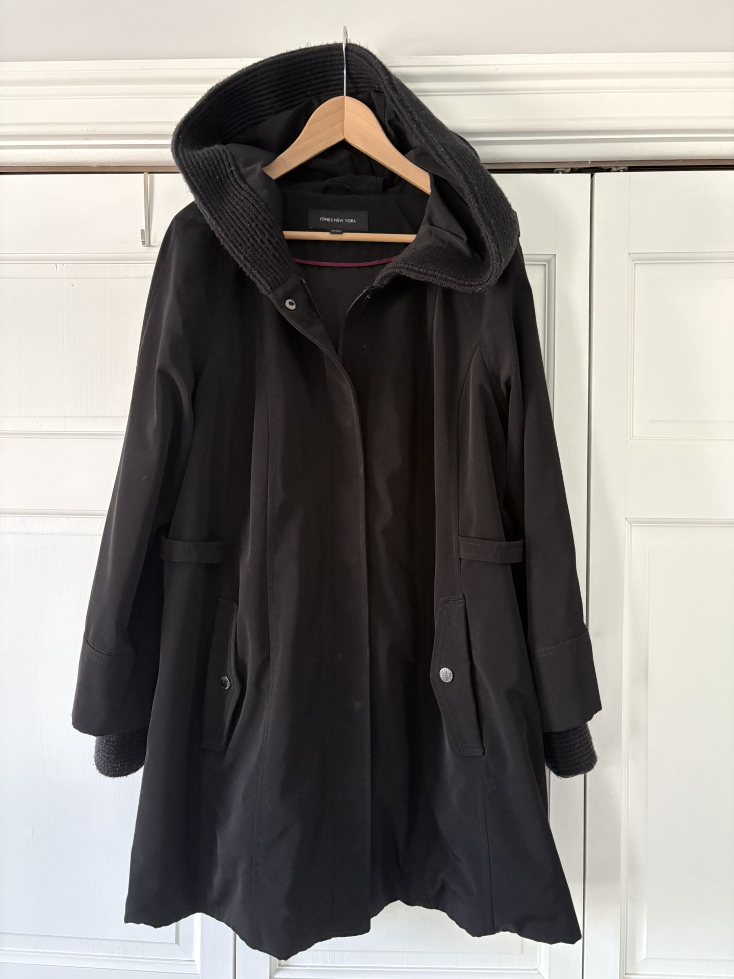 Jones New York Women’s Plus 1X Insulated Waterproof Hood Swing Coat Parka Jacket Black