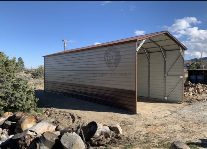 18ft wide, 45ft length, 13ft height Double legs& Vertical Roof, with Diagonal Bracing 2 sides fully closed & 1 end side closed Custom made carports & sheds at your own standard needs, message me for more information or for a free quote with no obligations.