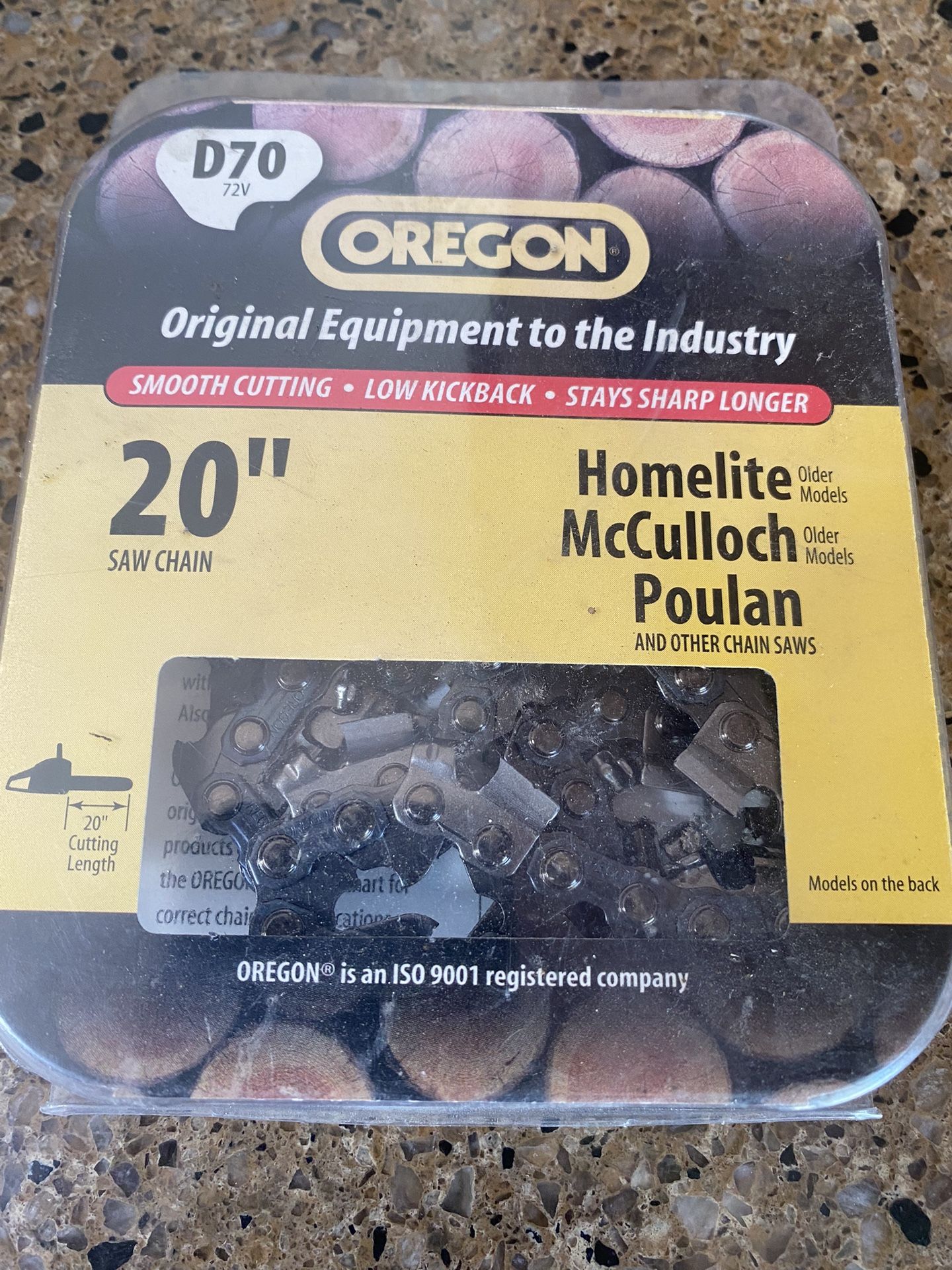 Saw chain - 20 inch - D70 - smooth cutting - low kickback - stays sharp. Oregon.