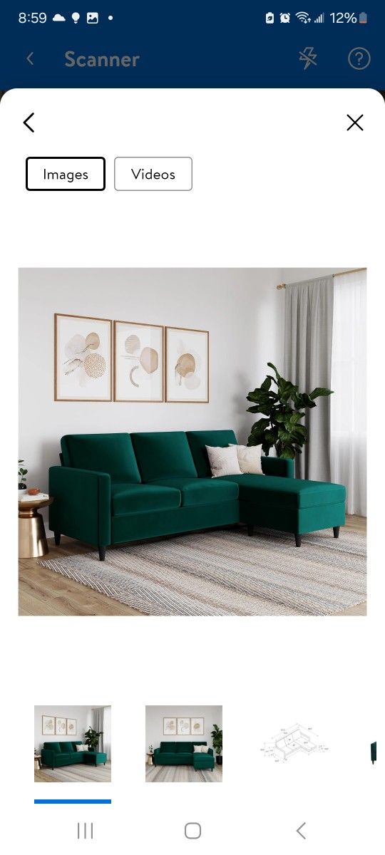 Velvet Green Sectional Sofa Converible Futon
