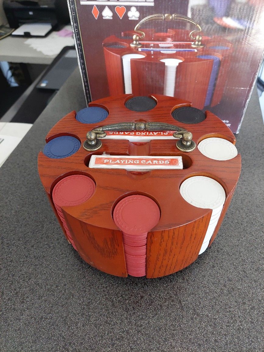 World series of poker chip set in good condition, all chips are there plus 2 new sets of playing cards