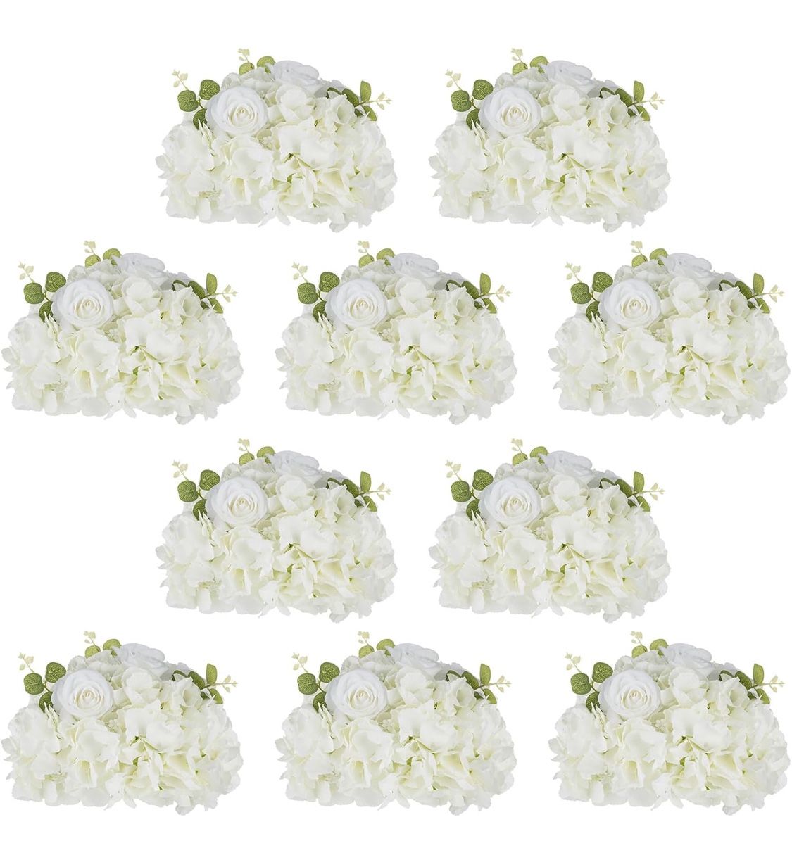 NUPTIO Flower Balls for Centerpieces Wedding: 10 Pcs 11.8 inch Diameter Artificial Flower Ball Arrangement Bouquet Centerpiece for Tables - White Fake Rose Flowers for Wedding Decor RETAIL PRICE: $106 +tax INV: 307400