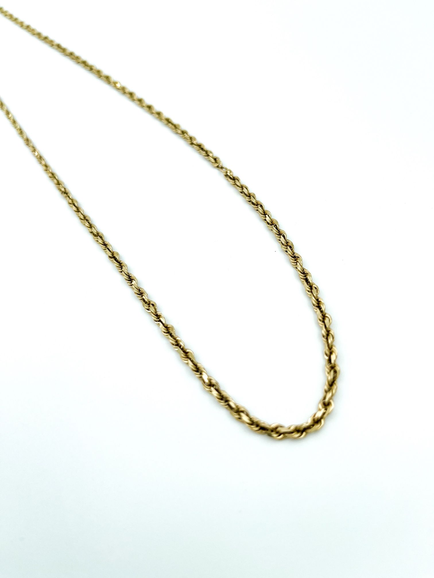 Solid gold rope chain ( not a hollow one like the new ones this is a original vintage rope chain ) New rope chains are thick and super light because they are hollow this one is a classic solid gold rope chain and it’s 24 inch long 2mm thick on 14k
