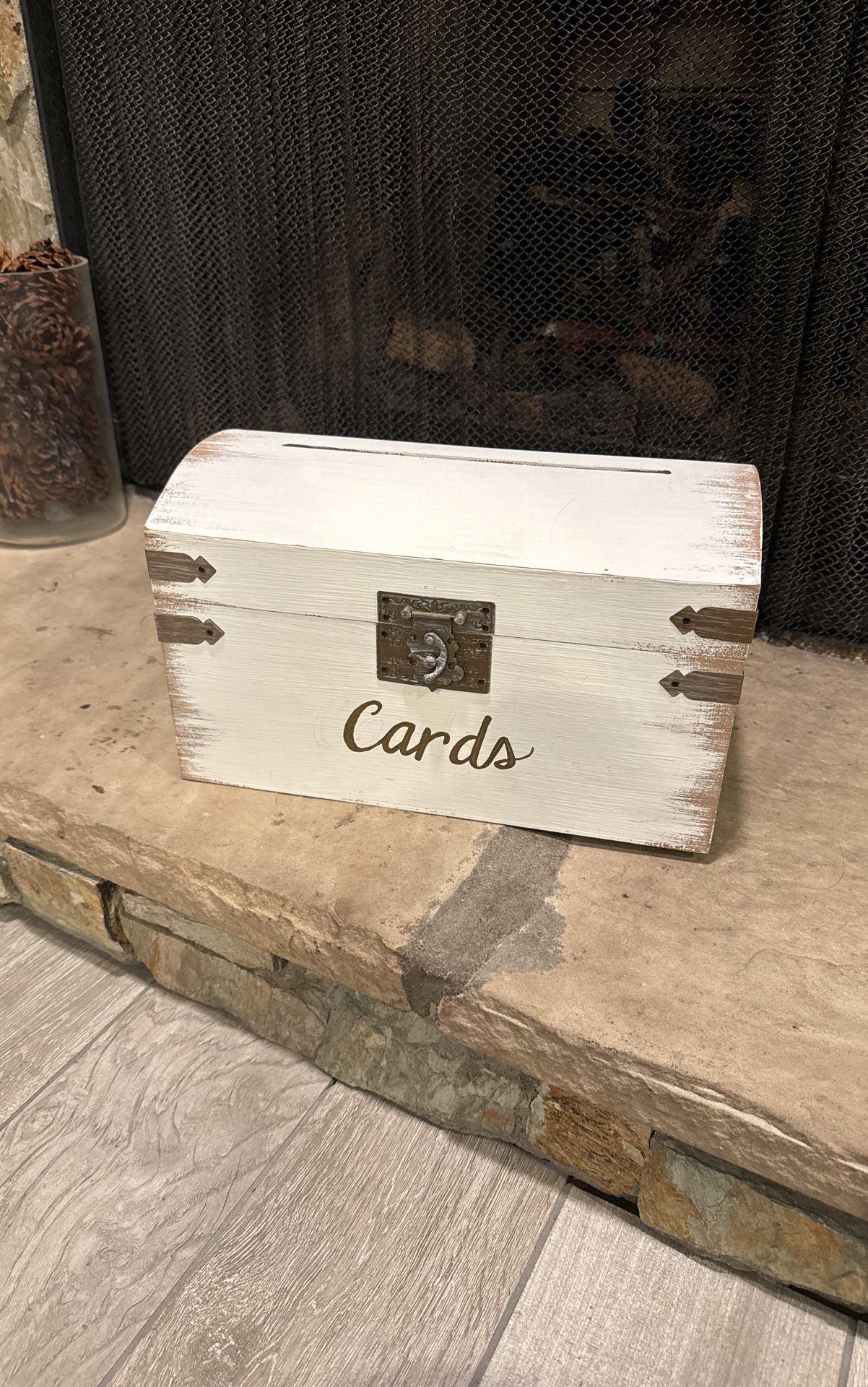 Bought and used for wedding. It served its purpose wonderfully and now we don’t have any use of it anymore. Works for most card sizes. Easy to open. Wooden, metal hinges and latch.