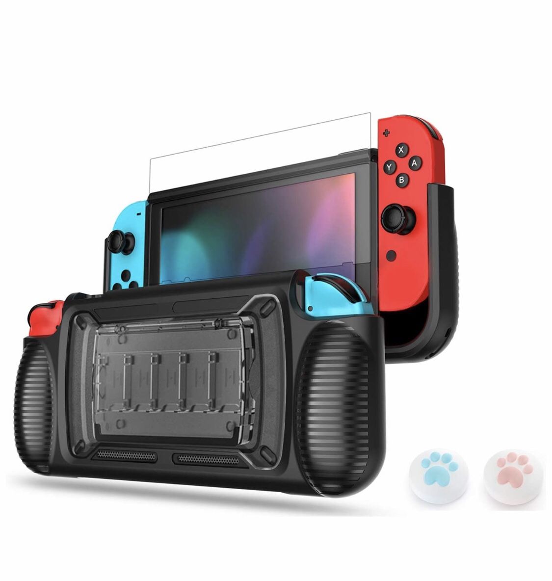 LeyuSmart Upgrade Grip Case for Nintendo Switch, Protective Cover & Tempered Glass Screen Protector & Thumb Caps, Ergonomic Design Comfortable Handhel