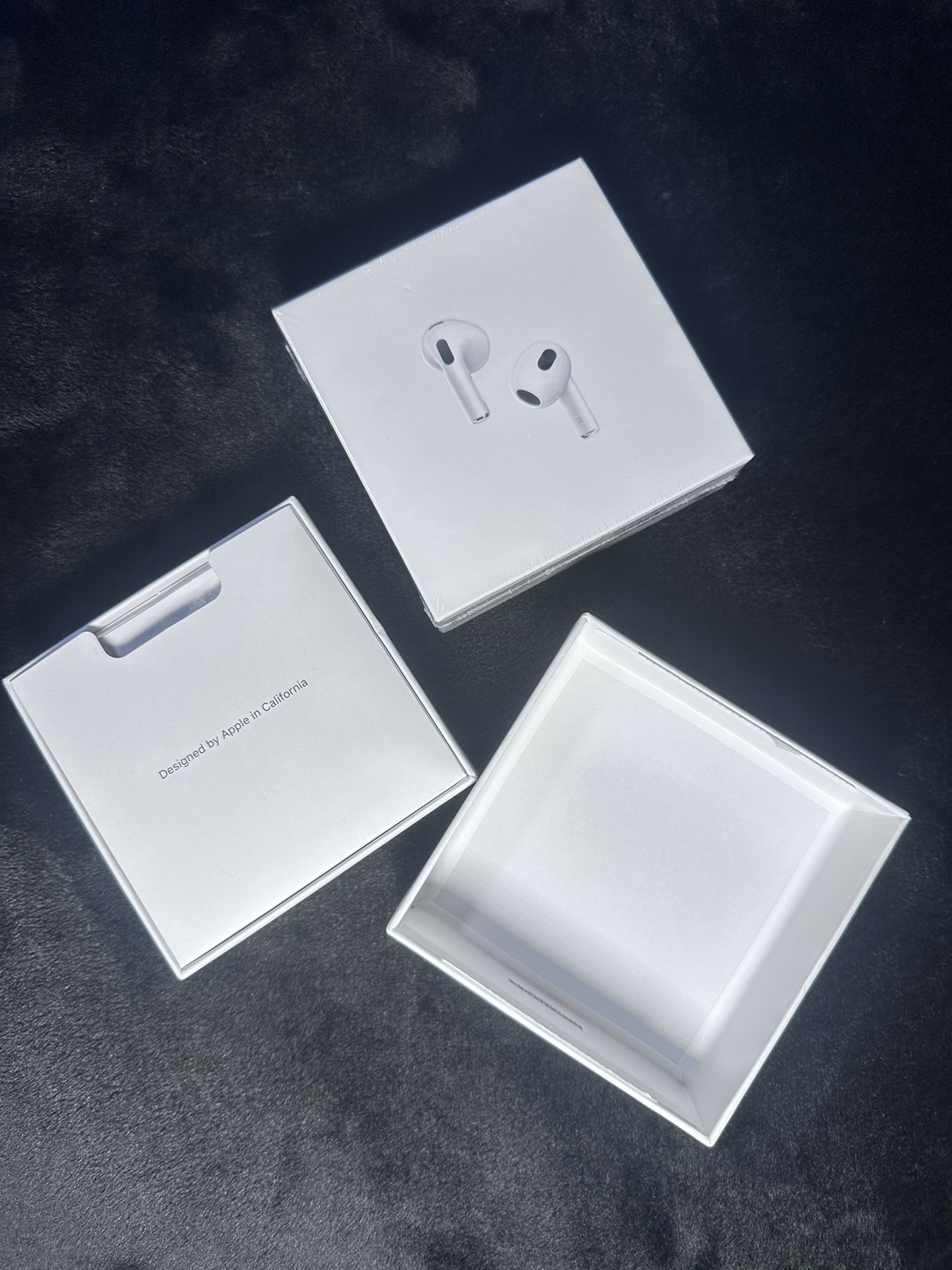 Brand New Apple Airpod 3rd Gen Sweat and water resistant for AirPods and charging case Lightning Charging Case Up to 6 hours of listening time Up to 30 hours total listening time Quick access to Siri