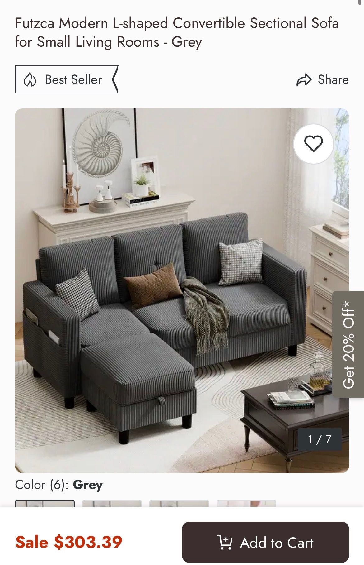 Futzca Modern L-shaped Convertible Sectional Sofa for Small Living Rooms - Grey
