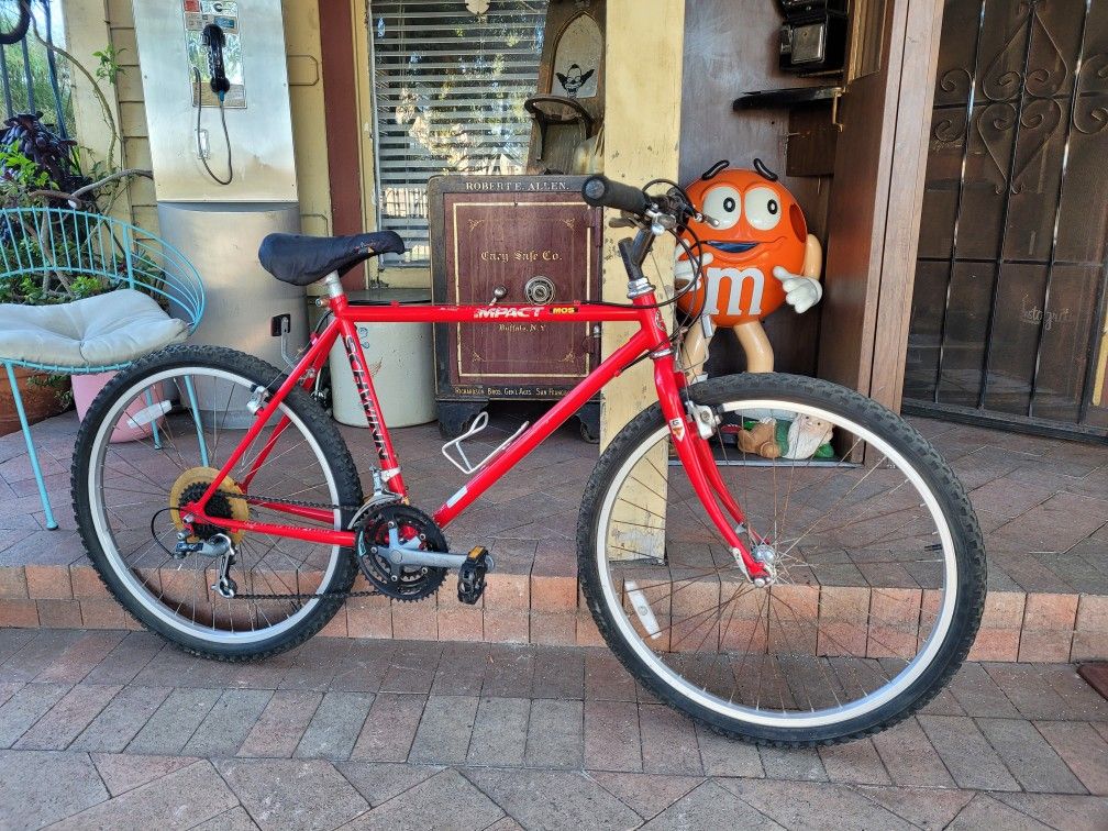 1990s Schwinn Impact MOS 21 speed mountain bike. Has 26 x 1.50 araya rims, and suntour components. Shifts throw all gears and brakes work, ready to ride. Has some scratches and rust here and there. Check out my other items posted